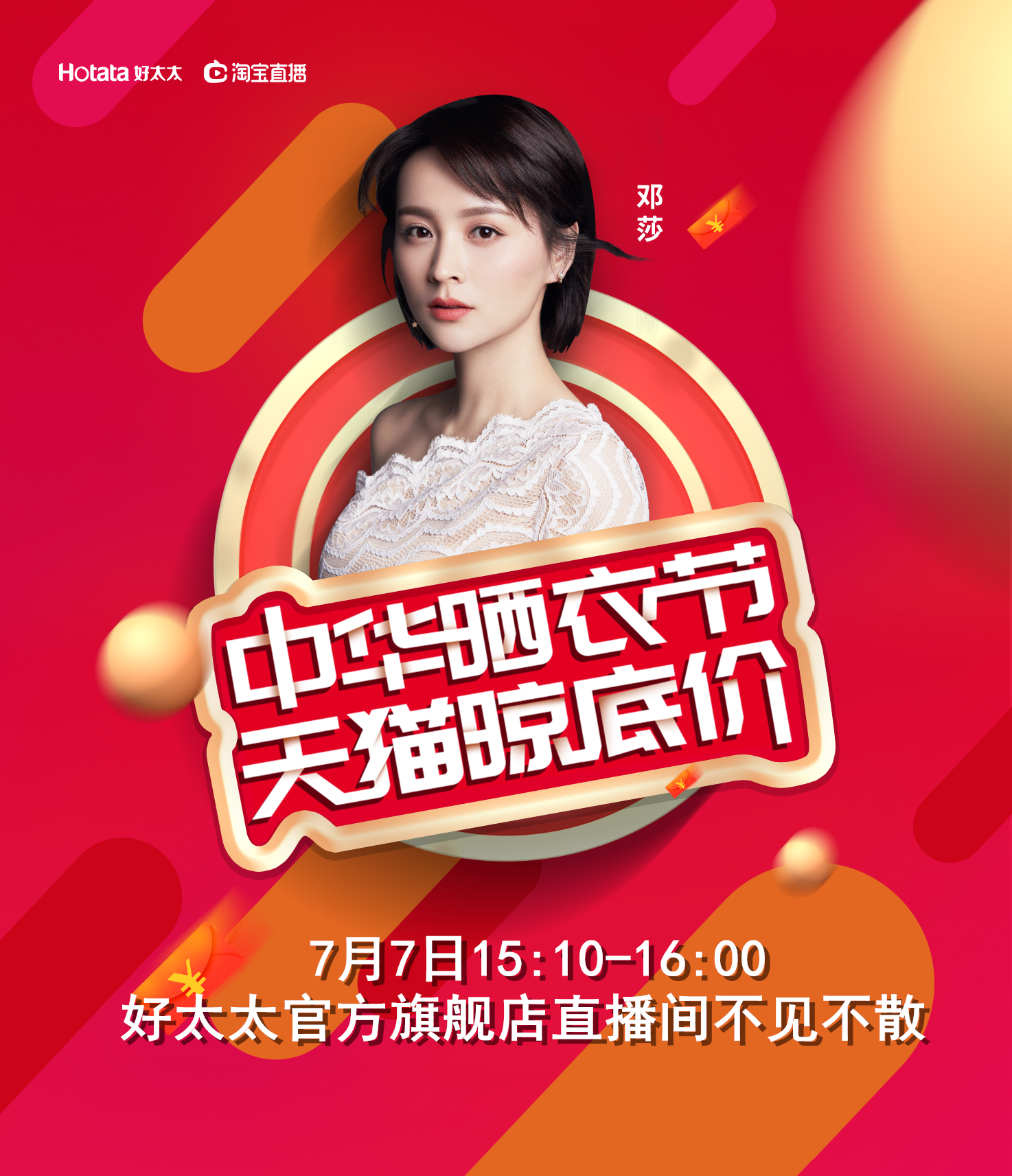 农历六月初六又是一年一度的中华晒衣节,传闻在这天里阳光最猛烈,邻里街访都会拿出衣物晒一晒,以祈求健康平安。这也是乐鱼每年非常盛大的节日,所以咱们的特邀嘉宾邓莎也会在直播间现场给大家发6.6元的现金红包,祝福大家都能平安顺遂,六六大顺,而且这红包是全天猫通用的哦~